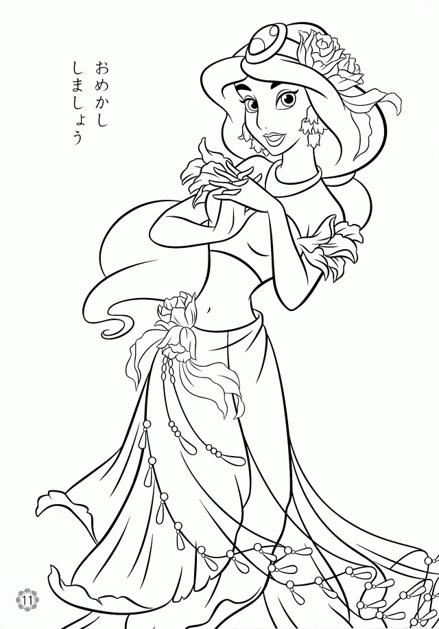 Baby Princess Jasmine Coloring pages For Kids. Disney Princess Coloring book For Girls. Disney Aladdin Colouring Best ...